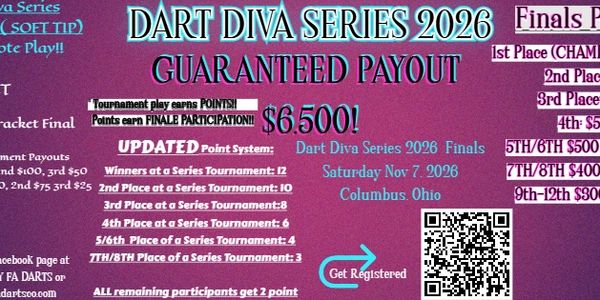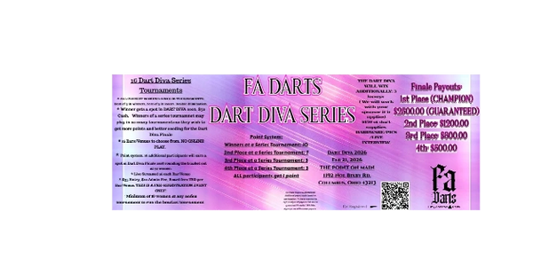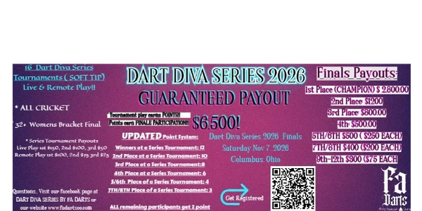 * Dart Diva is a 16 series ALL CRICKET tournaments for ALL LADIES! ALL WELCOME.